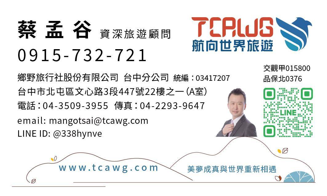 ▏名額有限,想飛、想走、想展開新旅程的人絕不能錯過! 報名洽詢|旅遊顧問 蔡孟谷 ➤ 立即撥打 | ➤ LINE諮詢