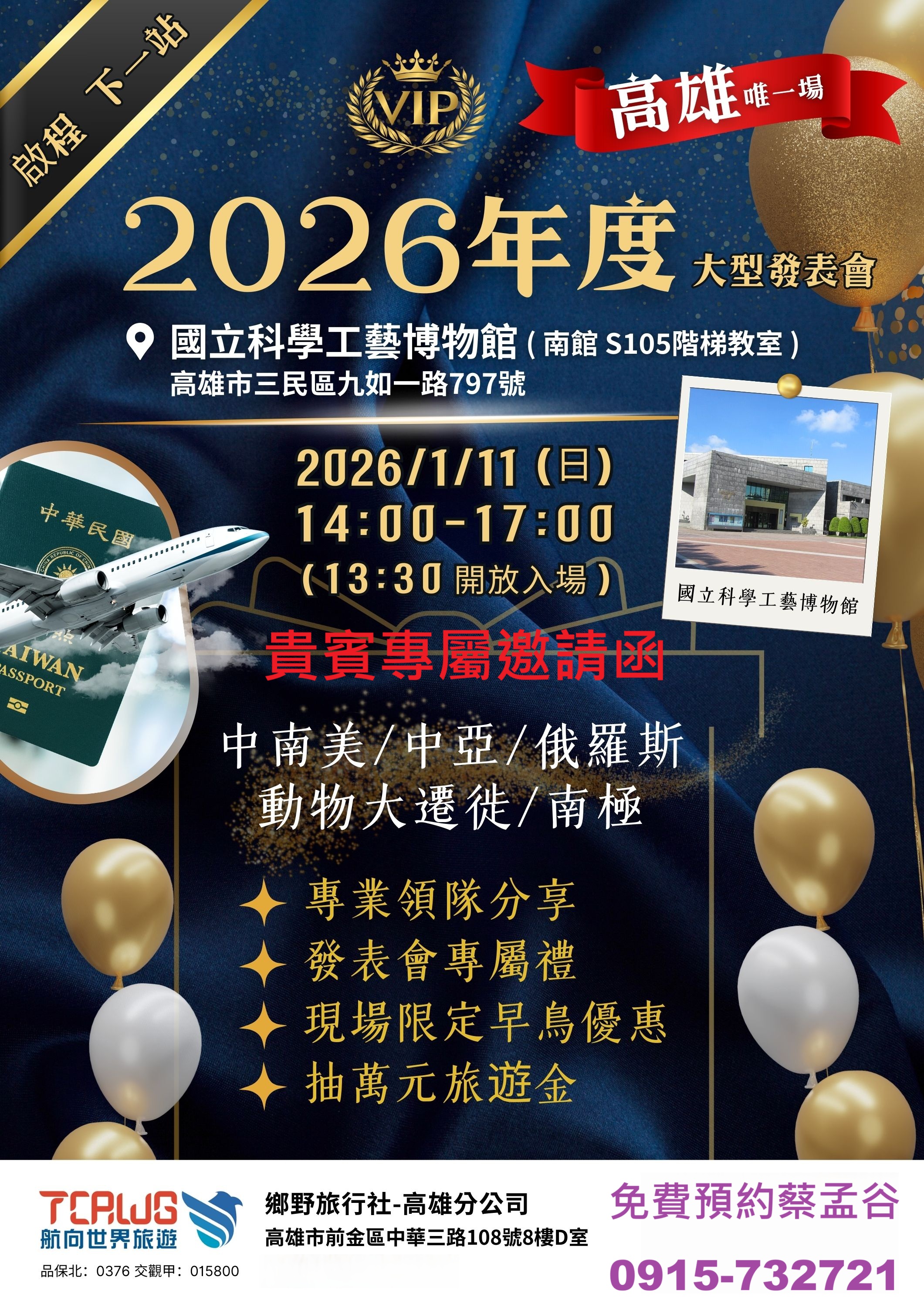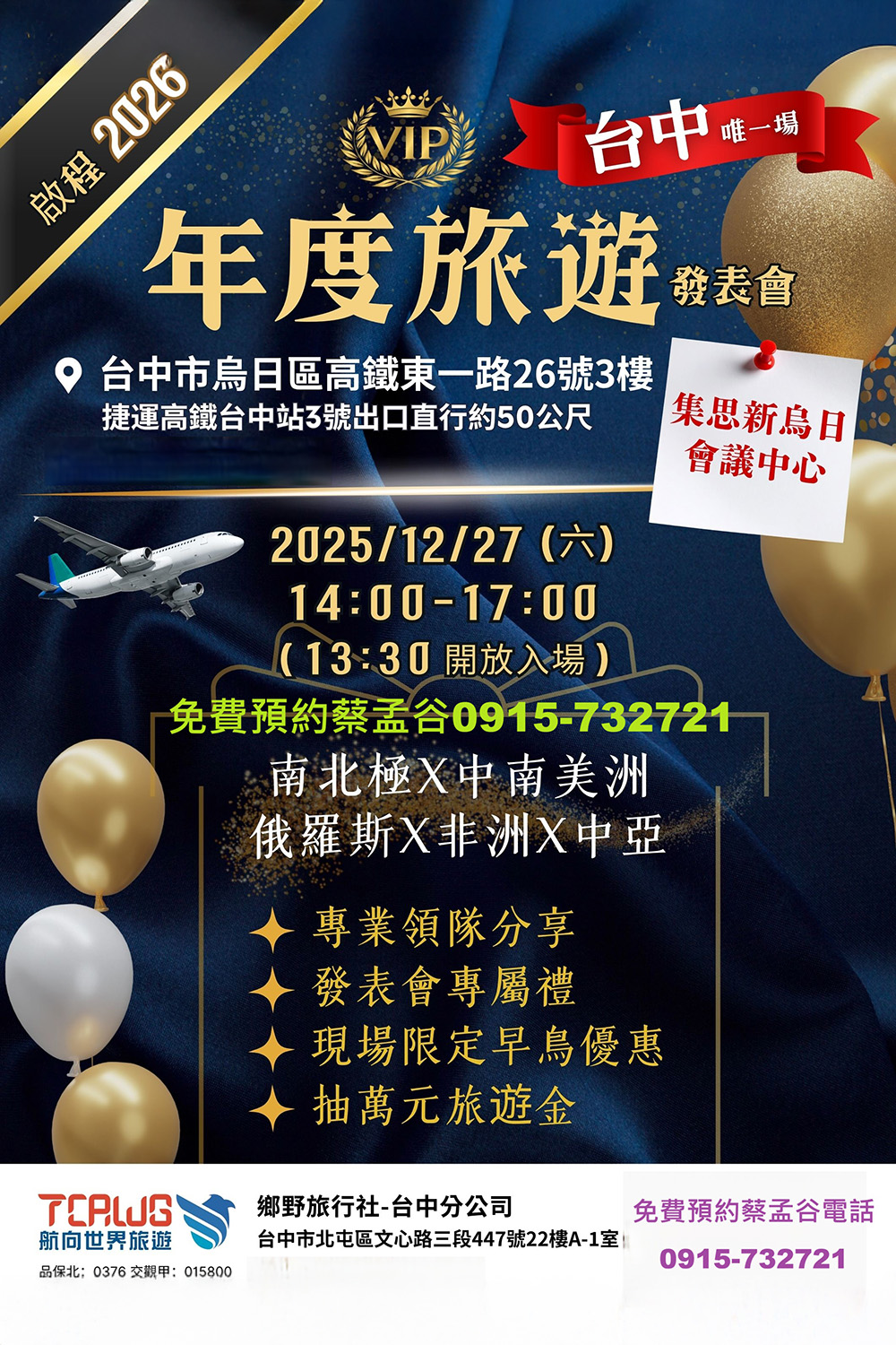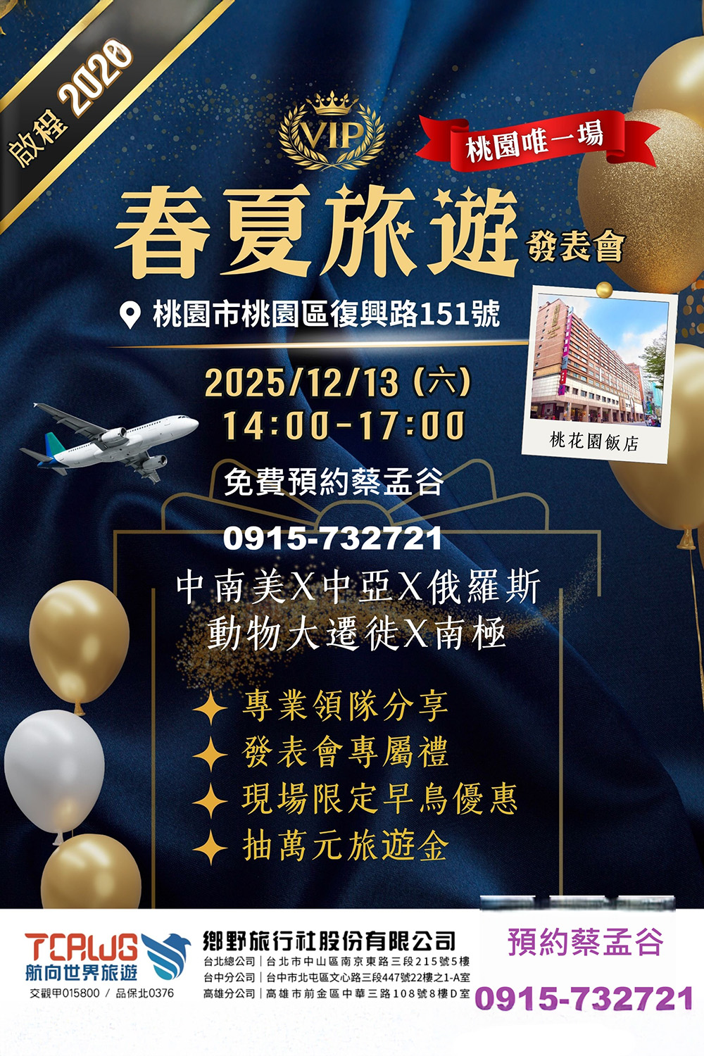 想知道近期最值得飛的夢幻目的地? 想掌握最新的節慶旅遊、深度文化、自然探險趨勢? 最新旅遊情報講座,帶你一次掌握全球旅遊新動態: ✔ 全球旅遊趨勢與熱門新航點 ✔ 巴西嘉年華 × 北極極光 × 世界文化深度玩法 ✔ 領隊私房路線、旅遊亮點解析 ✔ 如何挑選最適合自己的旅行風格 這不只是旅行,是重新走進世界的方式。